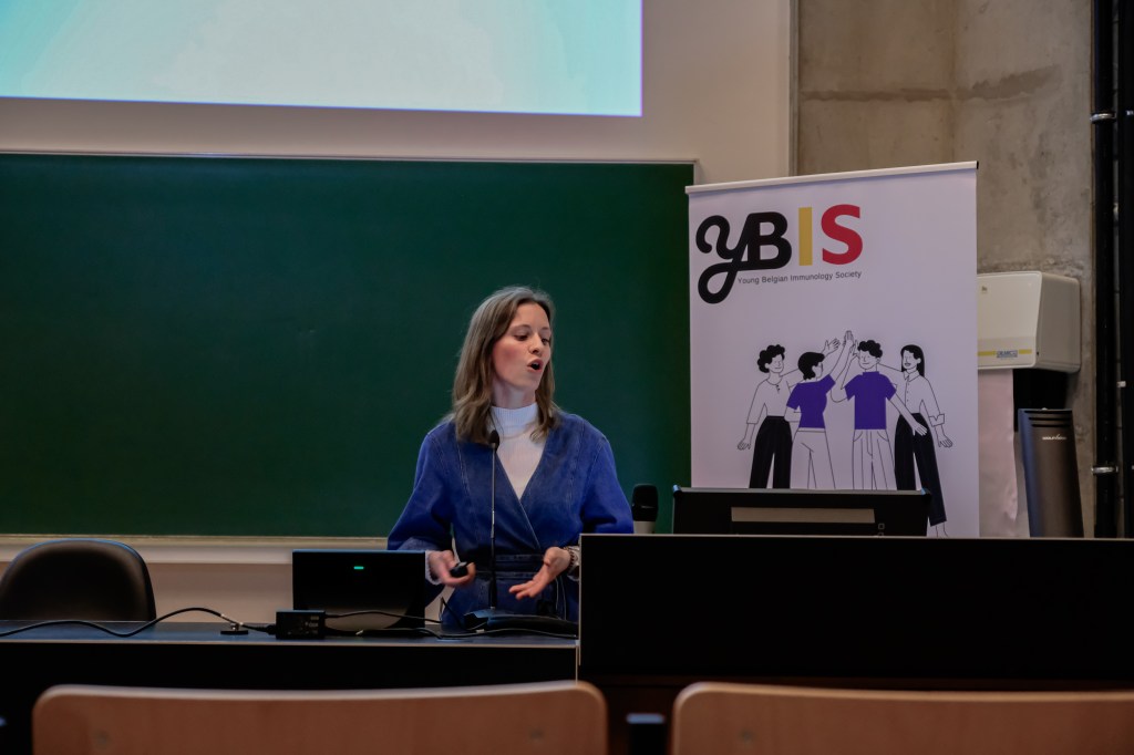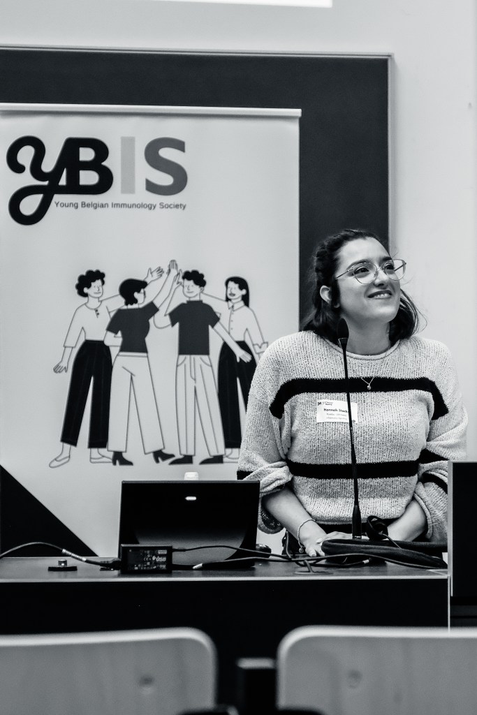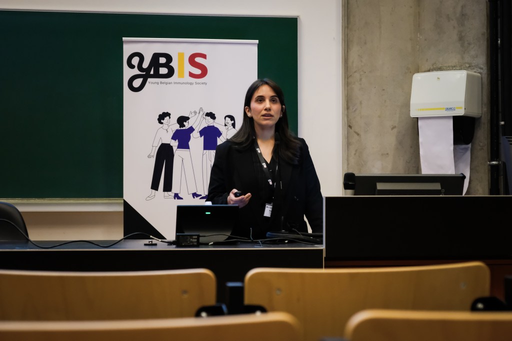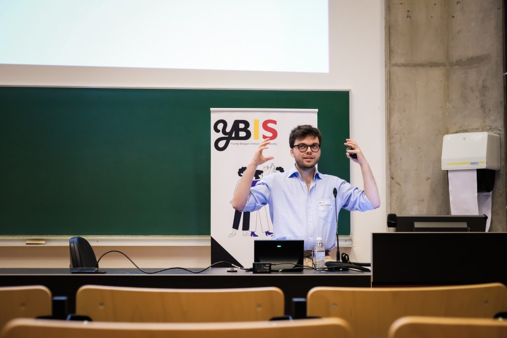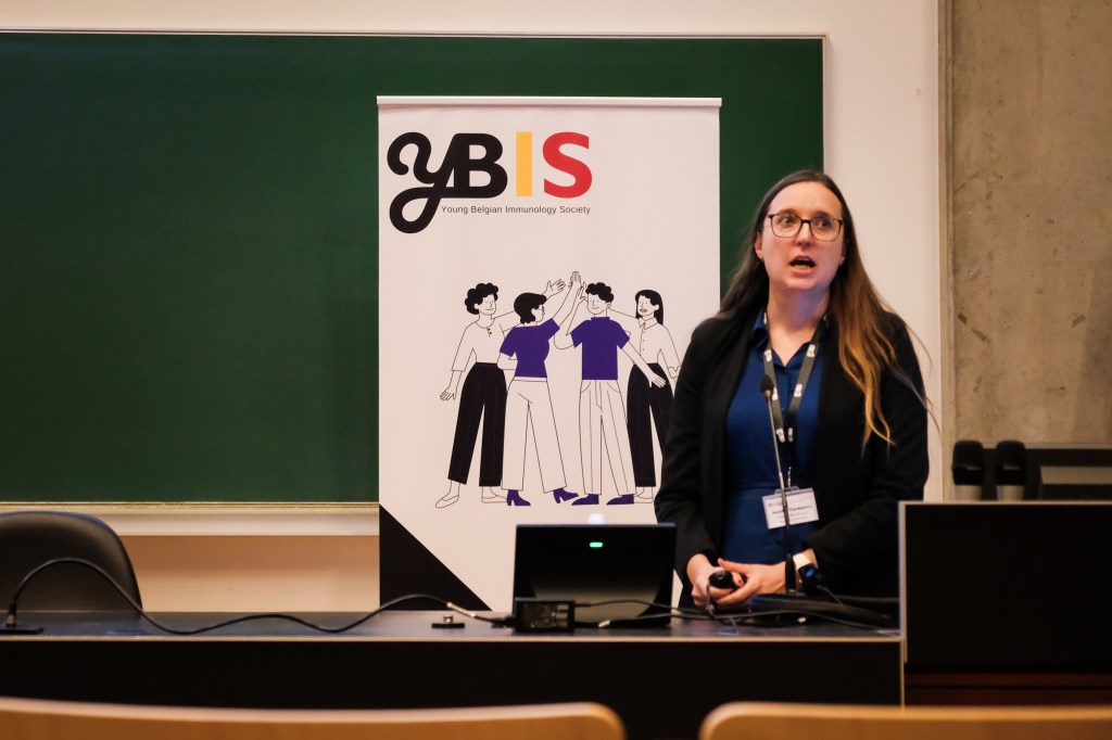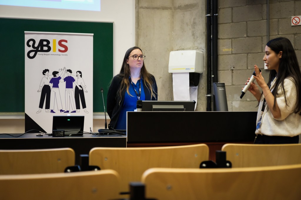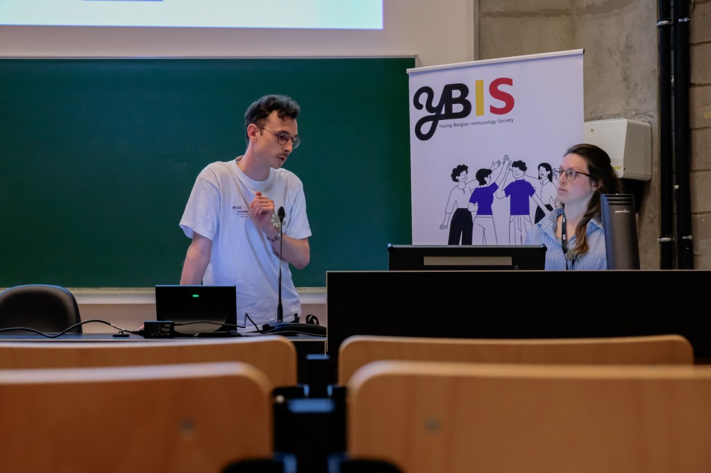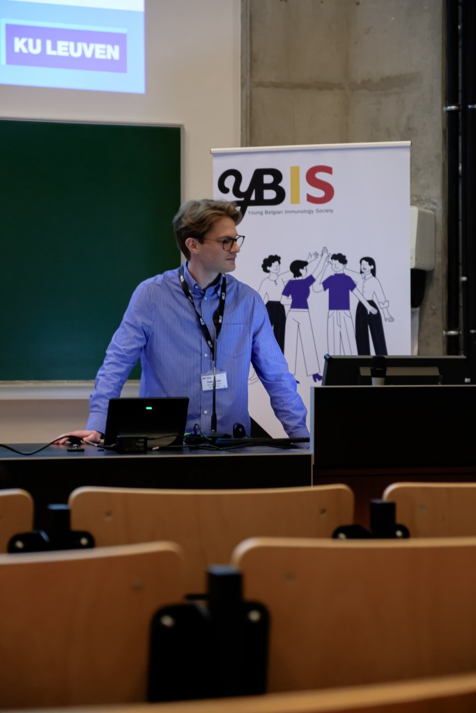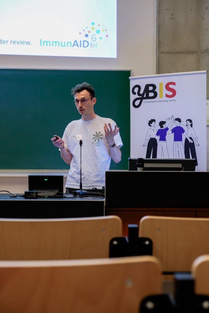 On May 9th, 2025 the yBIS 2nd Annual Meeting took place at Gasthuisberg, KU Leuven. Almost 200 young immunologists from all over Belgium gathered to celebrate and engage in science. Between inspiring keynotes (Helena Aegerter, UGent; Paulien Baeten, UHasselt; Jennifer Vandooren, KULeuven KULAK) and oral abstract presentations, participants could engage with our sponsors at the booths and network during our poster session. Talks on science communication and how to battle misinformation (Andreas Huysmans, UGent) and a career panel discussion moderated by yBIS Spokesperson Hind Hussein, completed this successful day.