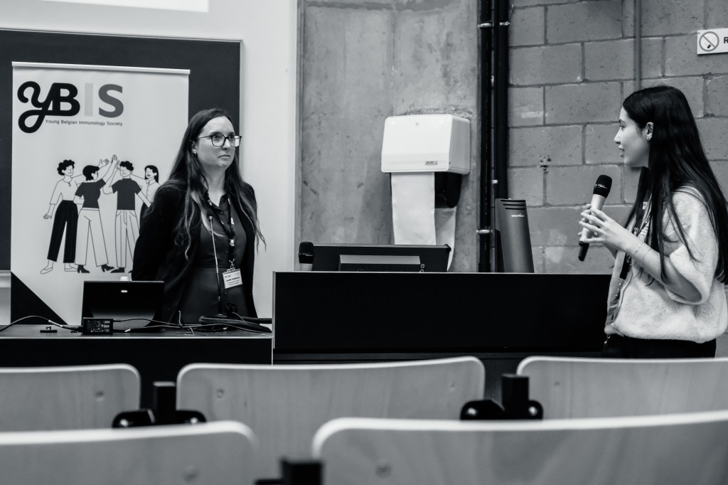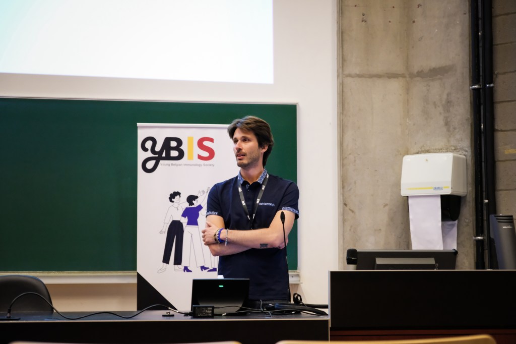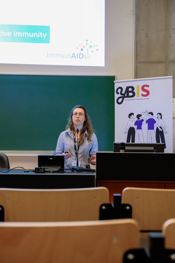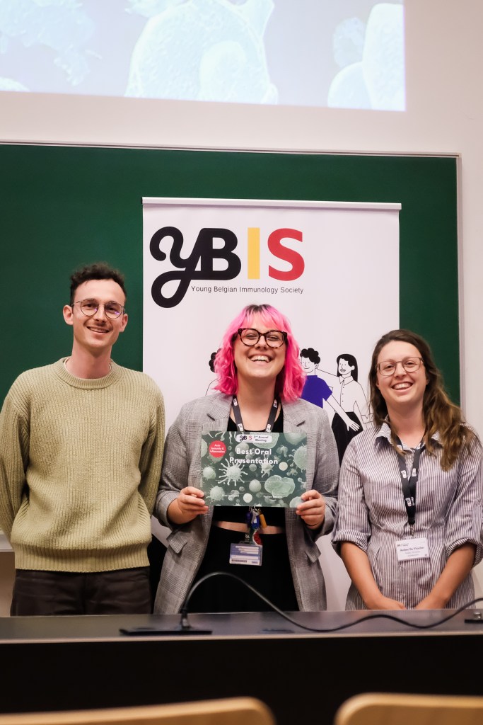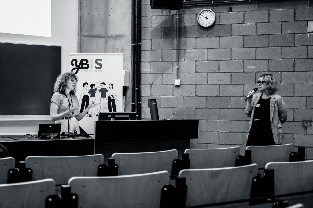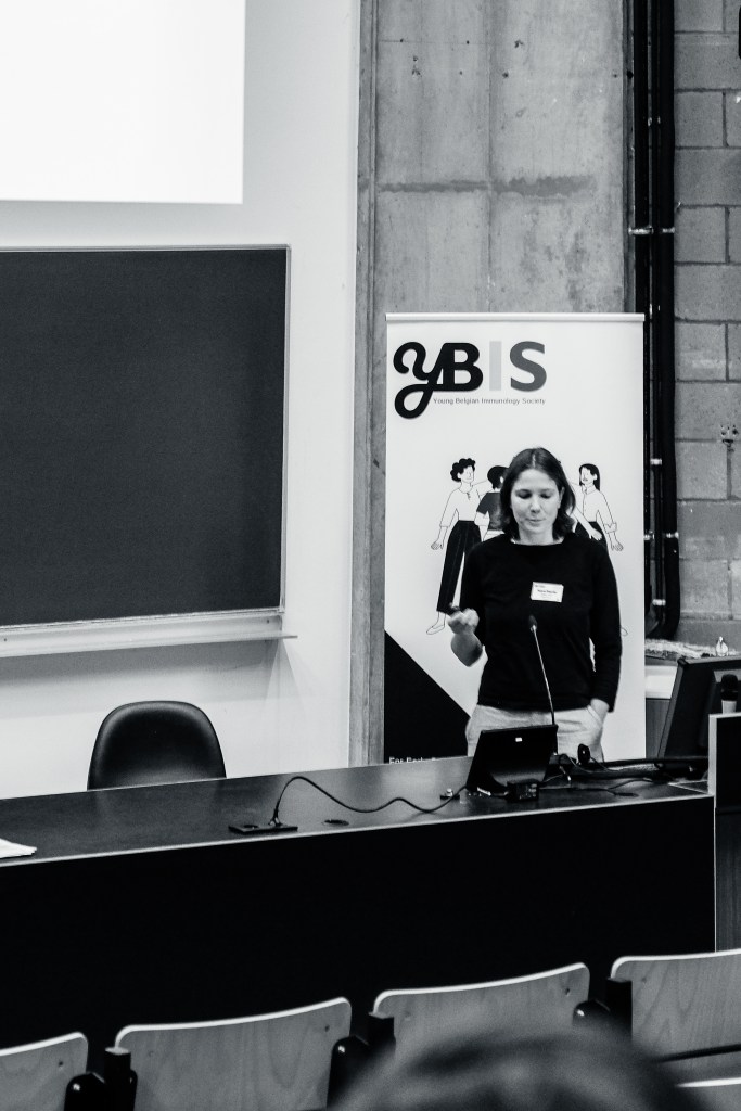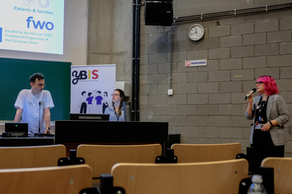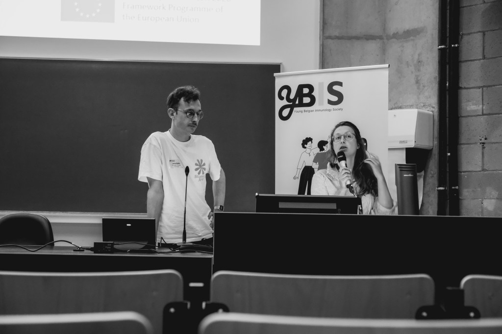 On May 9th, 2025 the yBIS 2nd Annual Meeting took place at Gasthuisberg, KU Leuven. Almost 200 young immunologists from all over Belgium gathered to celebrate and engage in science. Between inspiring keynotes (Helena Aegerter, UGent; Paulien Baeten, UHasselt; Jennifer Vandooren, KULeuven KULAK) and oral abstract presentations, participants could engage with our sponsors at the booths and network during our poster session. Talks on science communication and how to battle misinformation (Andreas Huysmans, UGent) and a career panel discussion moderated by yBIS Spokesperson Hind Hussein, completed this successful day.
