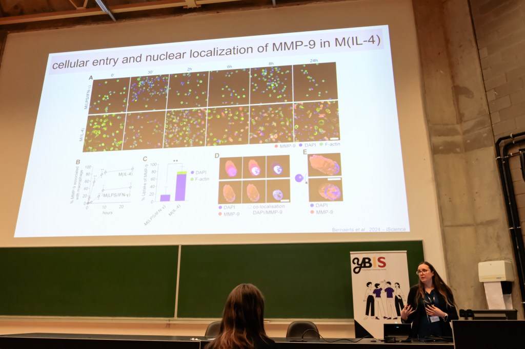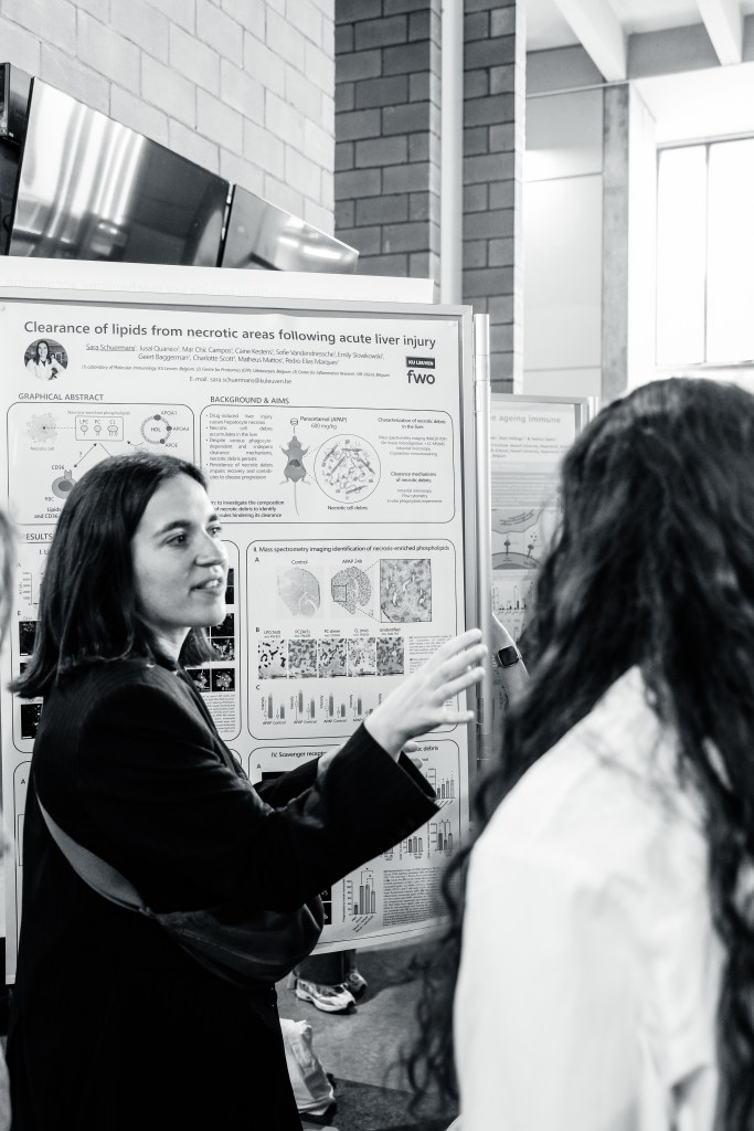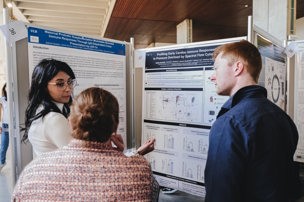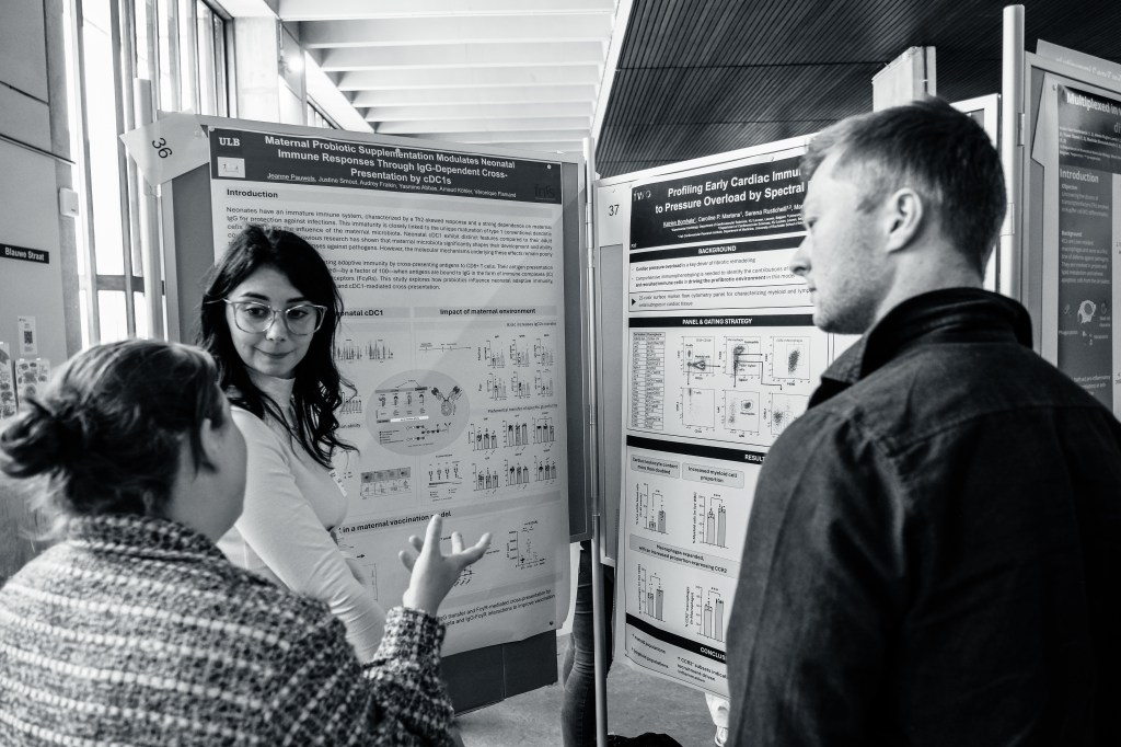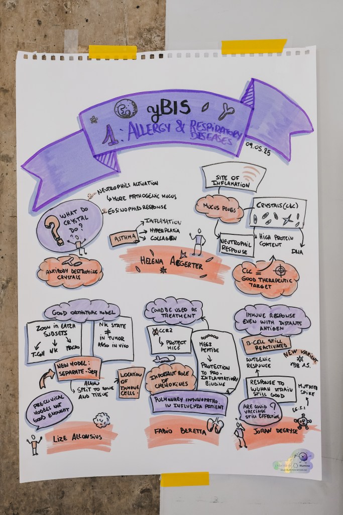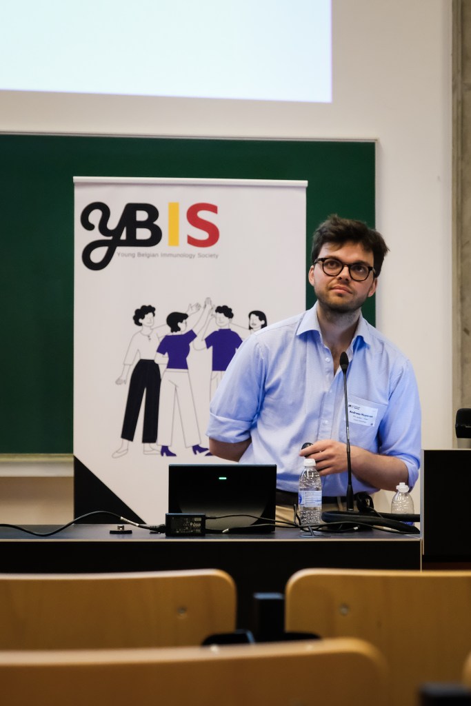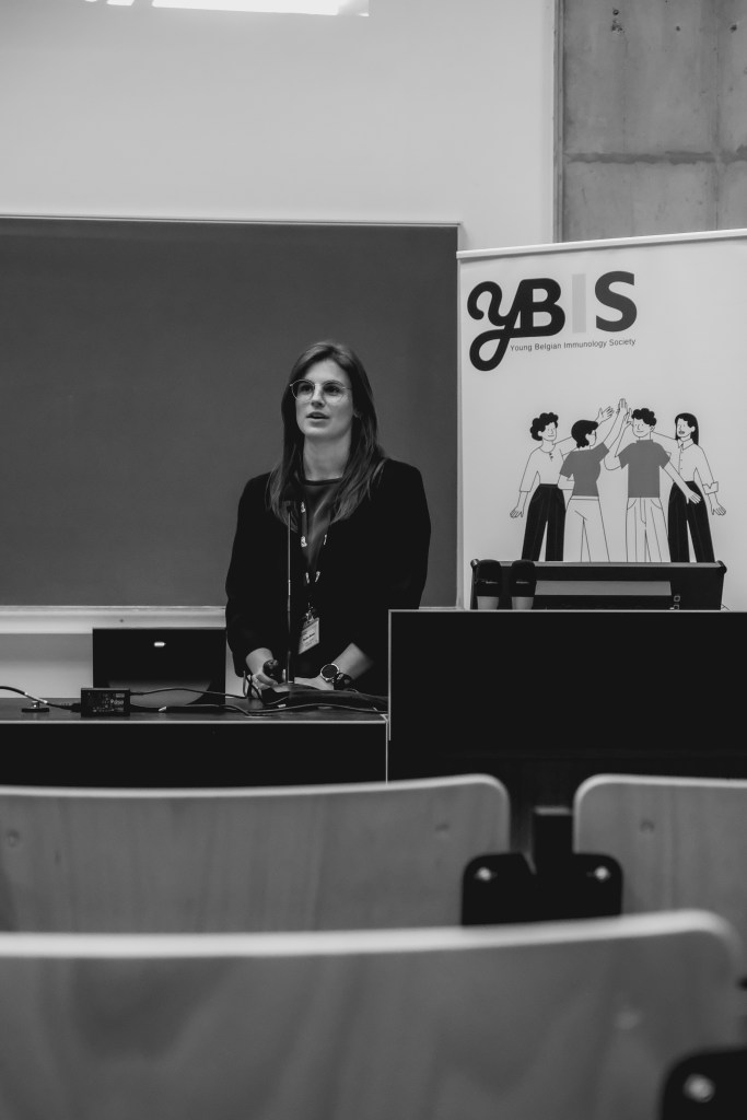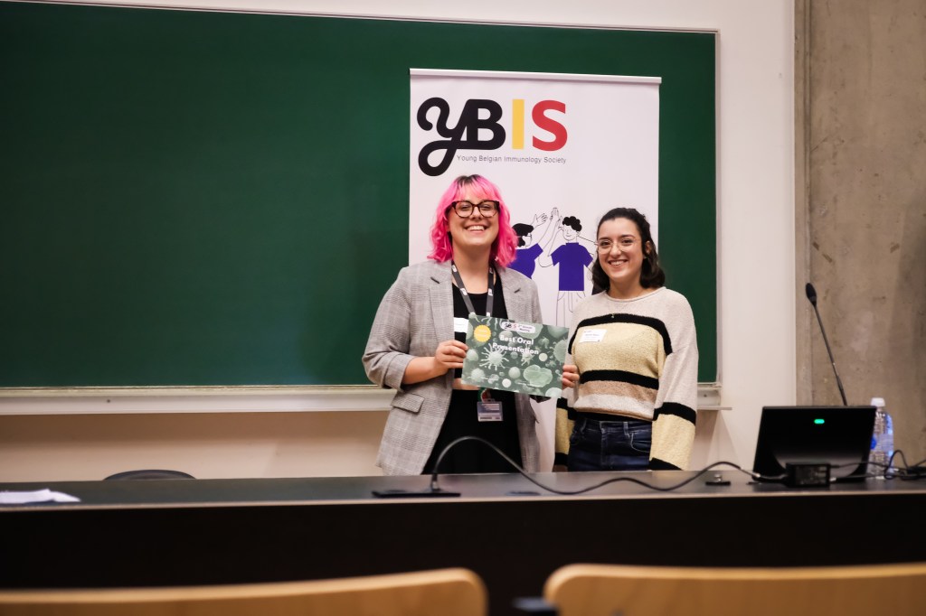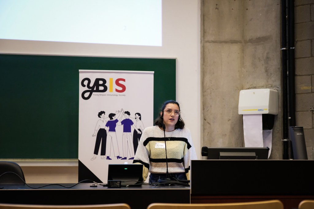 On May 9th, 2025 the yBIS 2nd Annual Meeting took place at Gasthuisberg, KU Leuven. Almost 200 young immunologists from all over Belgium gathered to celebrate and engage in science. Between inspiring keynotes (Helena Aegerter, UGent; Paulien Baeten, UHasselt; Jennifer Vandooren, KULeuven KULAK) and oral abstract presentations, participants could engage with our sponsors at the booths and network during our poster session. Talks on science communication and how to battle misinformation (Andreas Huysmans, UGent) and a career panel discussion moderated by yBIS Spokesperson Hind Hussein, completed this successful day.