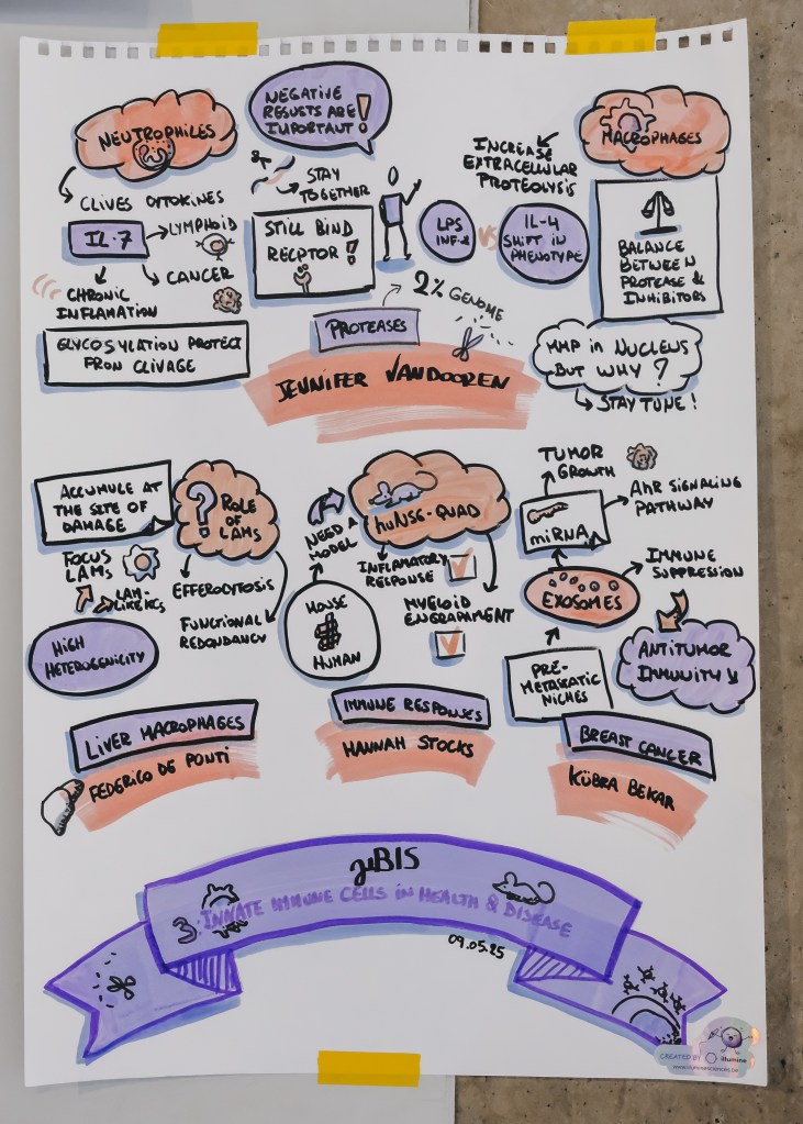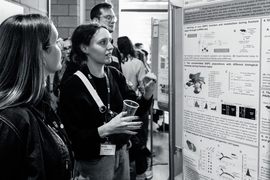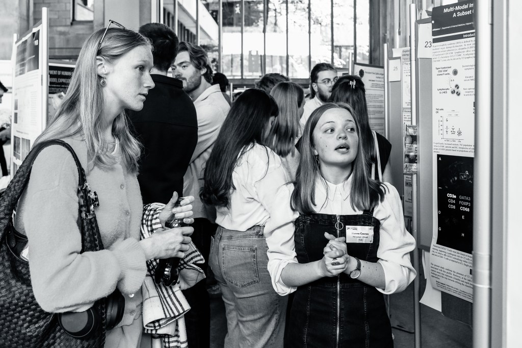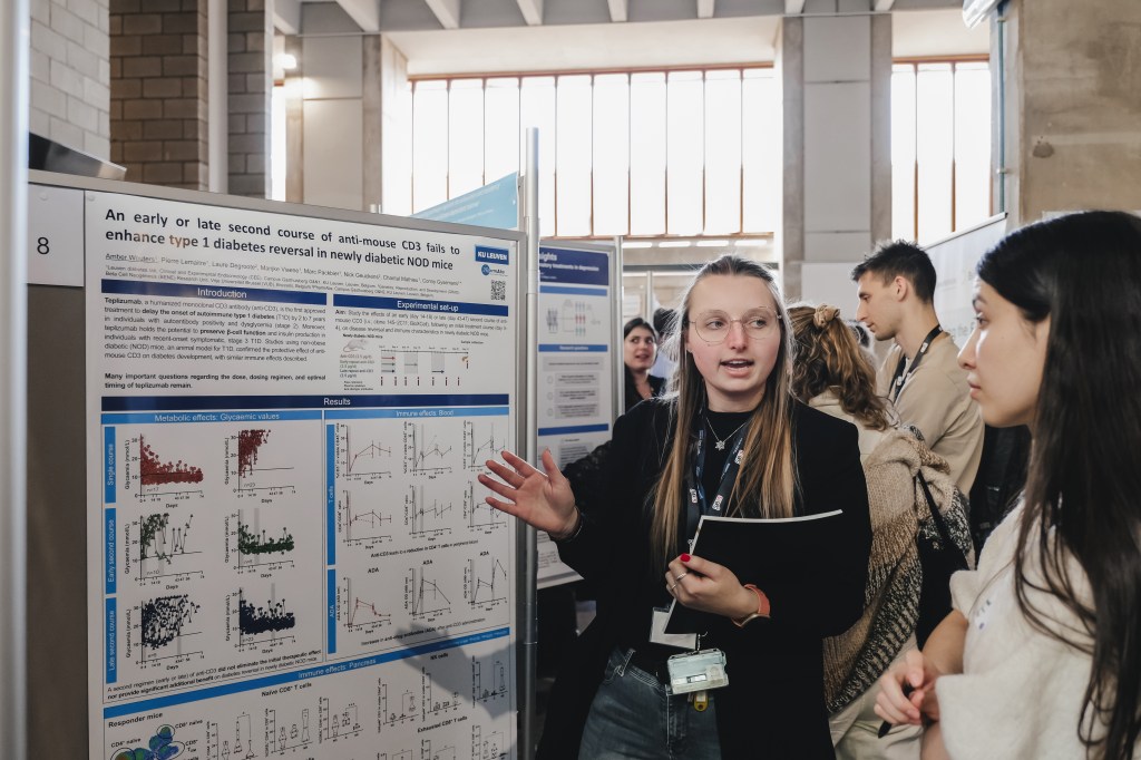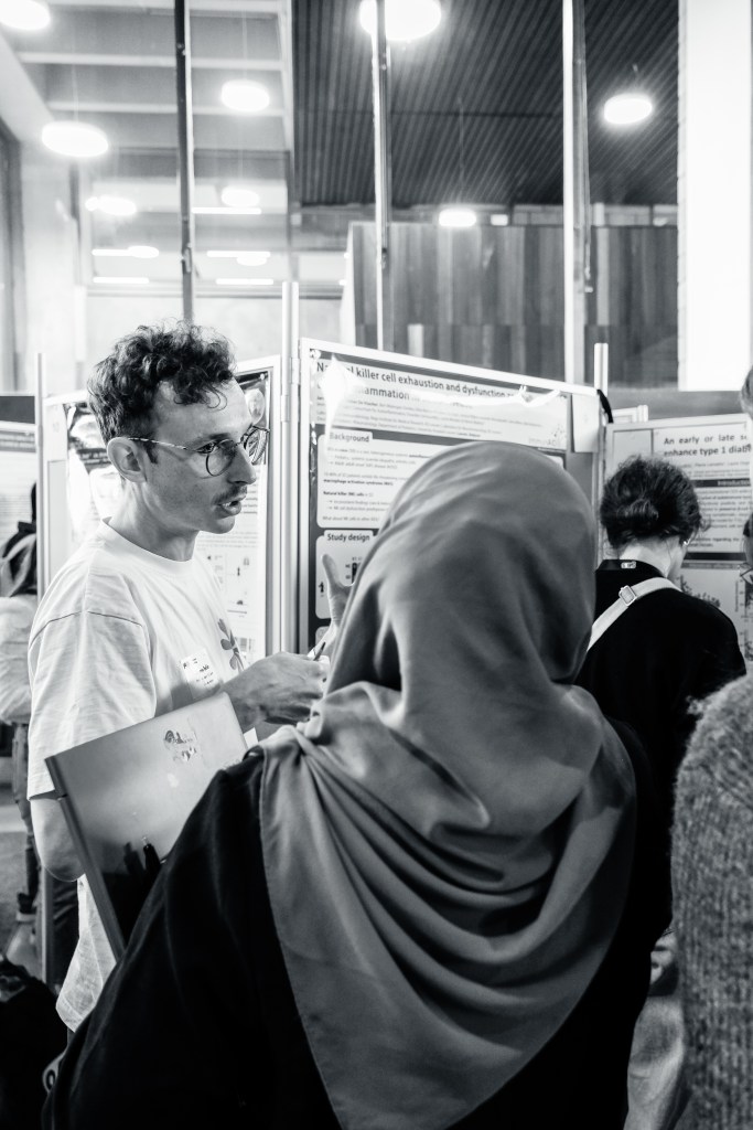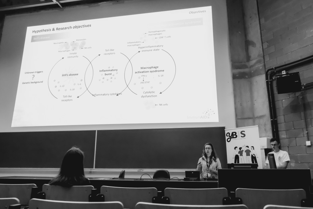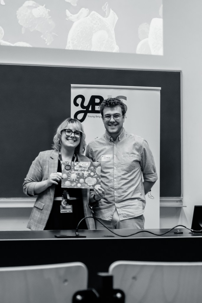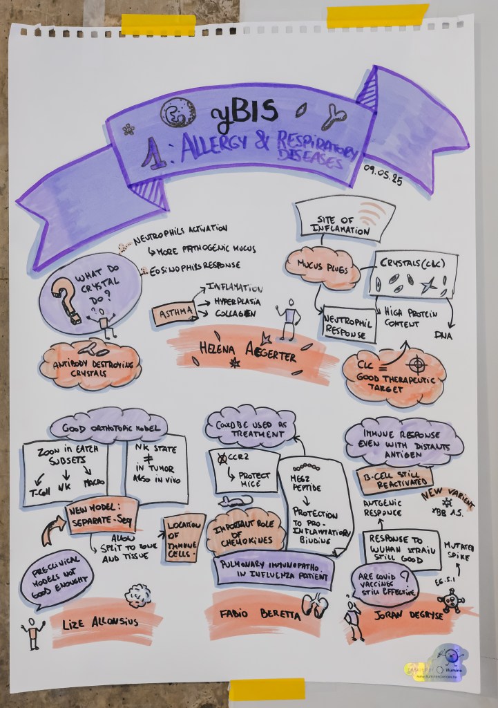 On May 9th, 2025 the yBIS 2nd Annual Meeting took place at Gasthuisberg, KU Leuven. Almost 200 young immunologists from all over Belgium gathered to celebrate and engage in science. Between inspiring keynotes (Helena Aegerter, UGent; Paulien Baeten, UHasselt; Jennifer Vandooren, KULeuven KULAK) and oral abstract presentations, participants could engage with our sponsors at the booths and network during our poster session. Talks on science communication and how to battle misinformation (Andreas Huysmans, UGent) and a career panel discussion moderated by yBIS Spokesperson Hind Hussein, completed this successful day.